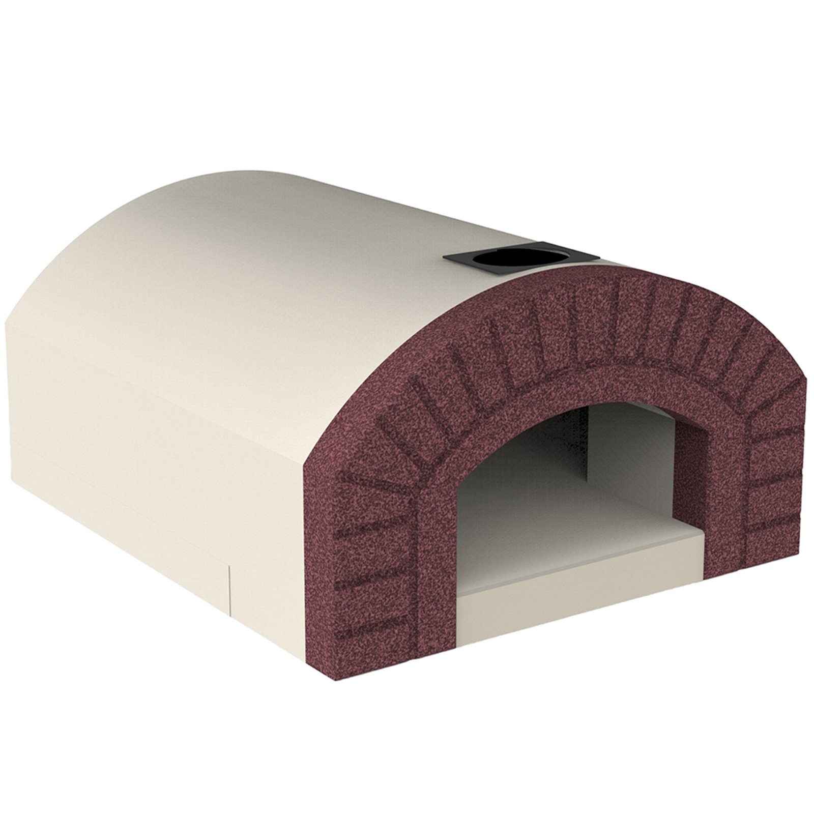 La chambre de cuisson est fabriquée en briques réfractaires de haute densité pour une isolation thermique optimale. Le plan de cuisson rectangulaire de 72 × 70 cm offre une surface généreuse pour pizzas ou pains. La structure externe en acier garantit une résistance aux intempéries et aux chocs thermiques. Le conduit de fumée est équipé d’une valve ajustable pour moduler le tirage. La porte facilitant l’ouverture est robuste et épouse la forme du dôme, contribuant à l’étanchéité thermique.
