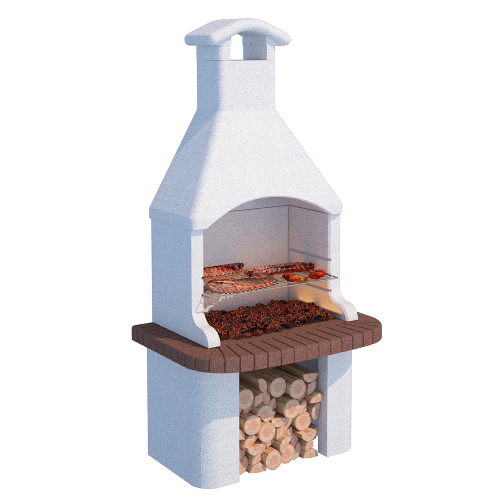 La structure est conçue en béton réfractaire pour résister à la chaleur intense. La grille en acier chromé est réglable sur trois niveaux pour un contrôle précis de la cuisson. La hotte intégrée améliore le tirage et protège l’utilisateur de la fumée. La surface de cuisson est suffisamment spacieuse pour accueillir plusieurs plats à la fois. L’ensemble est pensé pour durer dans le temps tout en restant facile à utiliser.